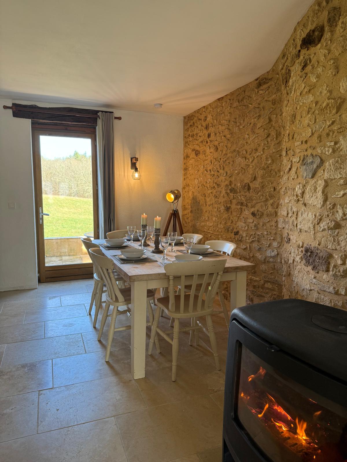 - Lounge with wood-burning stove and dining (indoor and out) for four